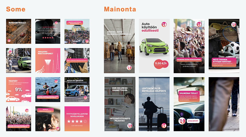 - Somemarkkinointi ja -mainonta (Facebook, Instagram, LinkedIn, TikTok, Pinterest)